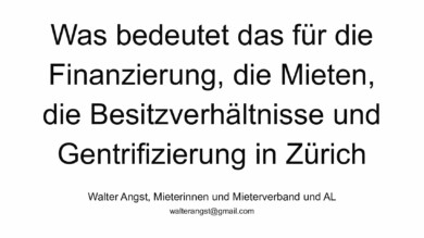 Fokus Immobilienmarkt Stadt Zürich 9. Juni 2021 von Walter Angst Was bedeutet das für die Finanzierung, die Mieten, die Besitzverhältnisse und Gentrifizierung in Zürich