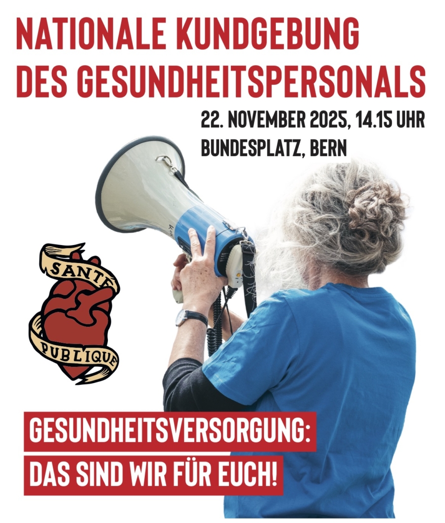 Unter dem Motto «Gesundheitsversorgung: Das sind wir für euch» fordert das Bündnis Gesundheitspersonal eine sichere Gesundheitsversorgung, angemessene Arbeitsbedingungen und die Umsetzung der Pflegeinitiative.